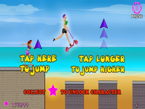 Jump higher and higher and go faster if you need too, jump over them and collect pink stars on youre way to the beach, with enough stars youll be able to unlock new friendly characters to go out under the sun like you.