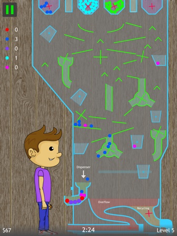 Increase the level by dispensing the correct candy amounts or overfilling the dispenser. Higher levels mean more candy money making potential, but the pace will increase and the machine will start becoming prone to malfunctions.