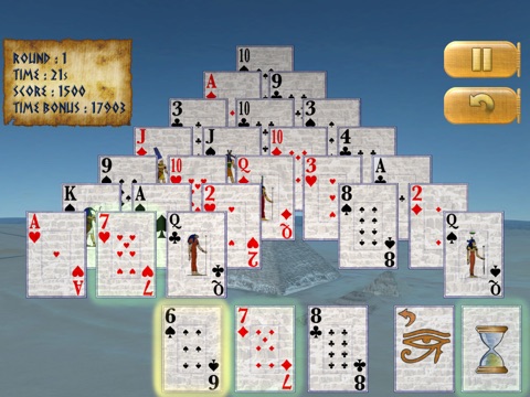 A gorgeous backdrop whilst you play a challenging but engaging pyramid solitaire rendition.