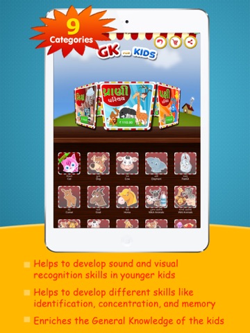 GK for Kids is a unique app in the Education Category that will help your child identify and learn about various and known animals, birds, kinds of animals and birds, people and their work, Vehicles, Insects and so on. It will strengthen and improve your child’s general knowledge about so many things and that too, with fun.