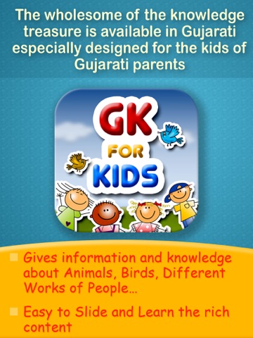 GK for Kids is designed as an Educational App for pre-schoolers and kids aged 4-10 years keeping the early learning and fun learning in mind. GK for Kids have friendly Graphics and easy-to-navigate Screens that even toddlers can move around with ease. It is developed in a manner so that your growing child can know about the beautiful world and all living there in.