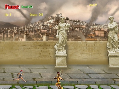 In this fast paced running game, your goal is to run as far as you can whilst avoiding your opponent Gladiators and other deadly obstacles, collecting coins and bonuses on your way. Simply tap the upper portion of the screen to jump and the lower portion of the screen to slide to avoid obstacles and collect bonuses from the air as you run. Three awesome game modes include single-player, multi-player and time trial with Facebook integration!