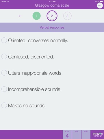 The Glasgow Coma Scale is a scale designed to assess practically the level of awareness in humans. This application includes interactive Coma Scale Glasgow, which allows to calculate the score of the eye opening, verbal response and motor response and send via email a PDF with the result.