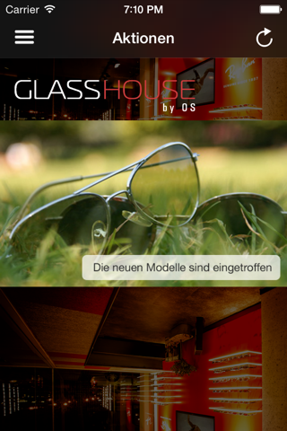Als GLASSHOUSE Kunde bleibst du mit dieser App immer auf dem neuesten Stand. Erfahre über neue Aktionen und lade ein Bild deiner neuen Brille direkt mit dieser App auf Facebook.
