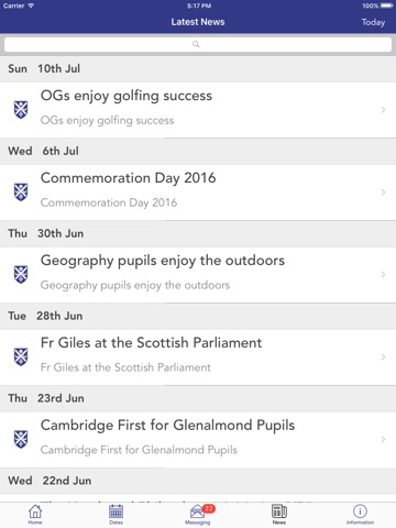 Shows all the latest stories from your school or organisation. If you tap on any news item you will be able to see more detail.