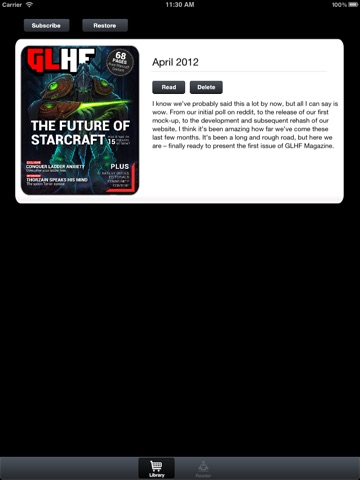 Going AFK? With the GLHF Magazine app you can enjoy all the latest StarCraft editorials, exclusives, and interviews wherever you want. With the iOS app, you can get all of the exciting content from the online issues beautifully rendered on your iPhone or iPad for your viewing pleasure.