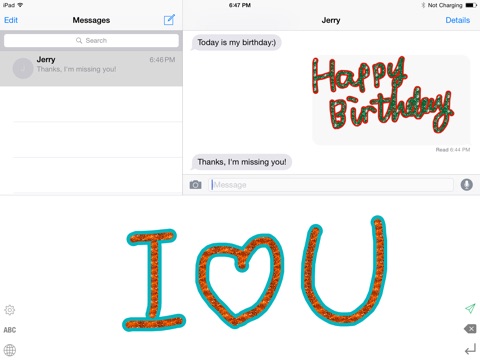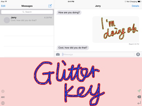 GlitterKey is a drawing keyboard for iPhone and iPad, with it you can draw glitter texts or shapes, then send it to your friends or upload.