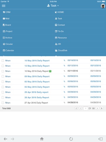 Tasks include Work Diary and Task Report. You can share your work with your colleagues by using work diary function.