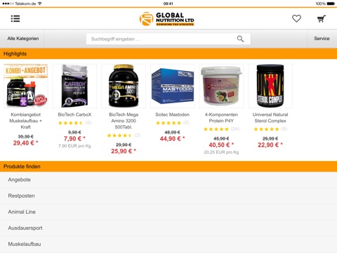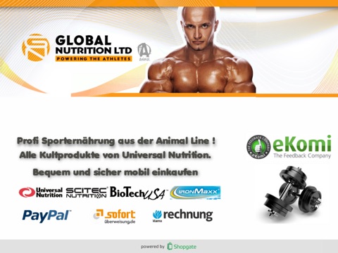 Hochwertige Sporternährung von Universal Nutrition, Scitec, BioTech USA, IronMaxx - Über unsere iPad/iPhone App hast Du Zugriff auf unser komplettes Produktsortiment. Bequem und sicher überall einkaufen, auch auf Rechnung !