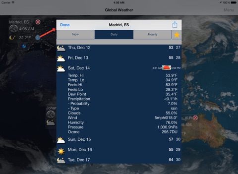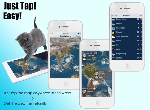 I relocated from Chicago to London, but spend half my time in Ireland. I love that I can get the weather in any of those places by tapping on the map, because it makes the weather more real somehow. Its also beautiful to see the lights at night in the US when I wake up in London.