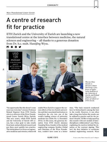Globe, the magazine of ETH Zurich and ETH Alumni, is published jointly by ETH Zurich and the ETH Alumni Association. The quarterly magazine for everyone who wants to stay connected with ETH Zurich and its alumni contains:
