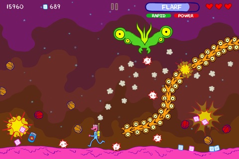 In Glorkian Warrior, you play as a cadet out to prove his worth and maybe get a promotion or two. Your trusty Super Backpack will help you fend off the incoming attackers by firing a constant stream of lasers into the sky. Grab power-ups dropped by the enemies to gain temporary access to some Glorkin good weapons. And if anything is too low to shoot, leap over it! Its good, classic shoot-em-up fun.