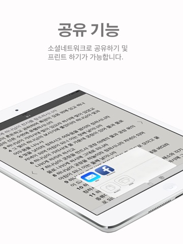 • 성경 구절을 페이스북, 트위터, 웨이보에 공유하기가 가능하며 문자 및 메일로도 보낼 수 있습니다.