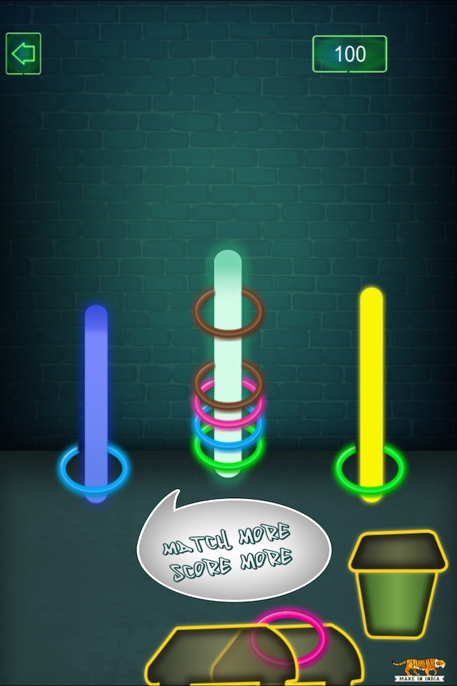Test your skills with Glowing Cicles. Toss circles and make them land on one of the 3 poles. When You land 2 circles of the same kind on top of each other, they disappear. The structure and colour of the circles though change though after tossing them. So its not as easy as it seems! The more circles you toss, the higher the score. Are you up for the challenge?