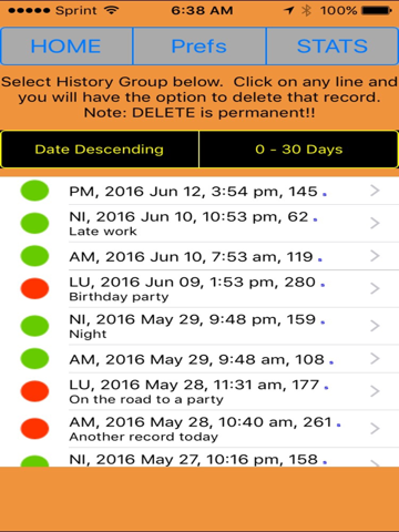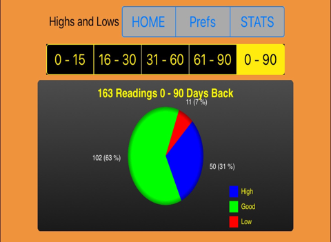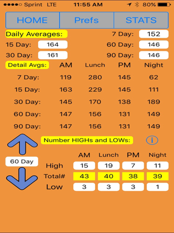 The User Preferences screen allows you to set your LOW and HIGH blood glucose reading thresholds to ensure full control of your average scores. You can also set different time periods of the day. Simple and very flexible to meet your current needs!