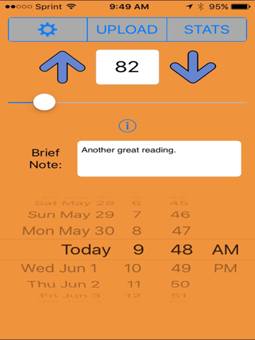 Uploading current readings is simple. You can easily set your blood sugar reading and add a note if you want. The current date and time automatically loads or you can change them depending on your needs.