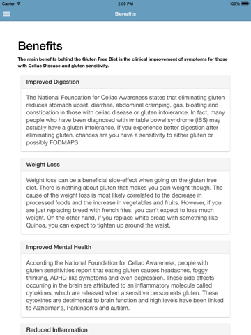 This is a NO-BS guide to the Gluten Free Diet. Other guides have poor quality information and terrible grammar. We personally researched all of the most accurate and scientific info, and collected it in this App.