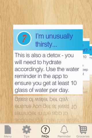 The GM Diet app helps to guide you through the seven days, every step of the way. Choose between the Original, Vegetarian, or Indian Version of the GM Diet. Browse through numerous tips and frequently asked questions. Set the water reminder to ensure you get enough water to flush out the toxins and use the handy grocery list to give you a boost while grocery shopping.