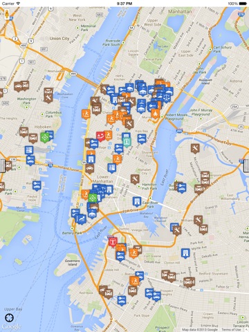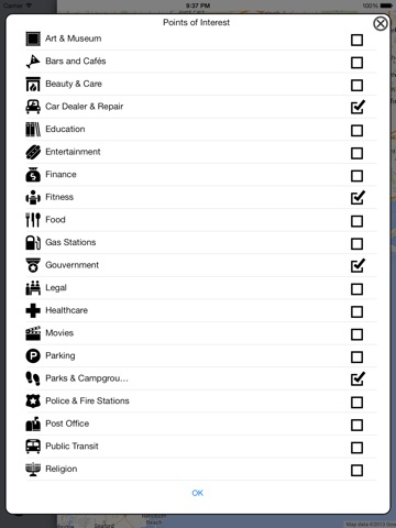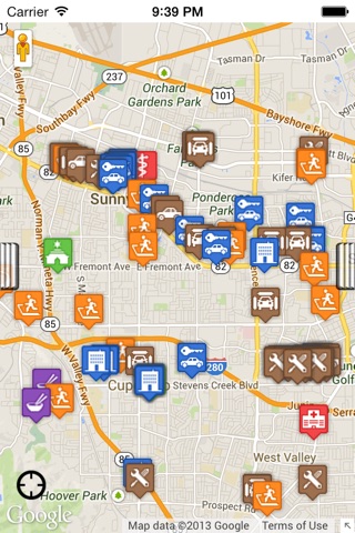 gMaps features road, satellite, hybrid and a terrain view and several Information layers like traffic, public transit and a weather forecast with live cloud view.
