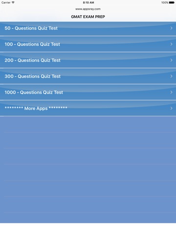 GMAT Quiz Questions free app providing 2500 questions for your Graduate Management Admission Test (GMAT) Exam. Prepared questions from certain grammar and knowledge of certain algebra, geometry, and arithmetic, Quantitative, Integrated Reasoning Section, Analytical Writing, Verbal Section.
