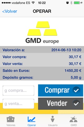 Esta app es la herramienta para gestión de los clientes de GMD Europe, con la que pueden realizar sus gestiones con GMD Europe relacionadas con los depósitos de Oro.
