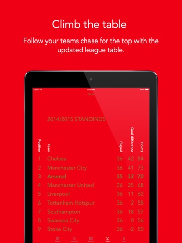 • Easily readable league table.