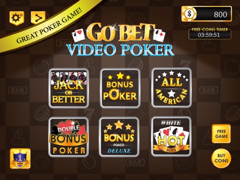 Video Poker is a virtual casino for all your mobile devices. Feel the thrill of winning big on your quest to the top. Try and test your jacks or better skills while trying to achieve greatness,