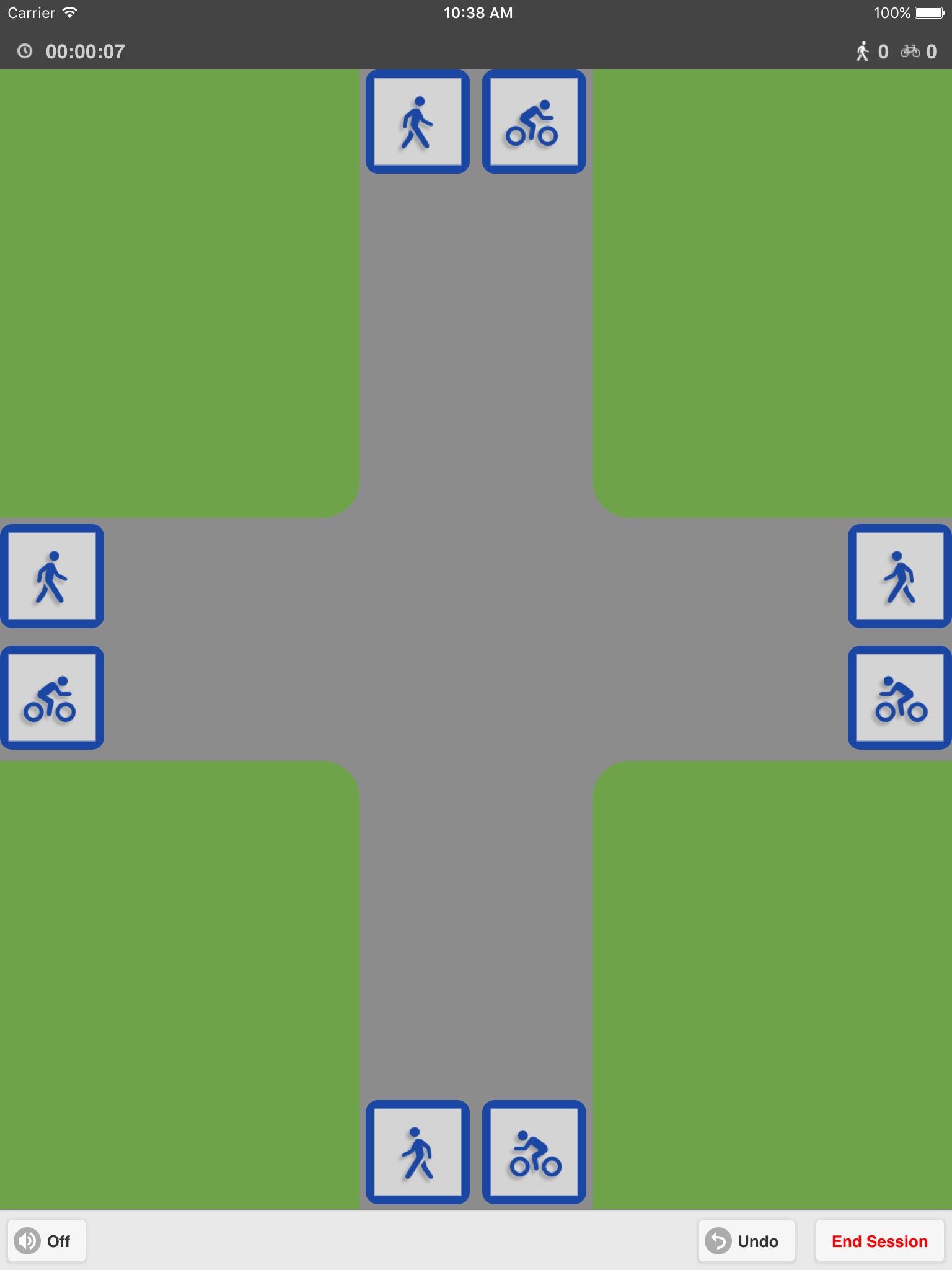 GoCounter is a free app for conducting manual traffic counts of pedestrians and/or bicyclists. The app supports both screenline and intersection counts, and uses a swipe-based interface to record the direction of each observed traveler. This app can be used to conduct counts as part of the National Bicycle and Pedestrian Documentation Project (http://bikepeddocumentation.org/); however, the app does not support the collection of traveler attributes such as helmet use or gender. GoCounter is powered by Brisk Synergies (http://www.brisksynergies.com/en/).