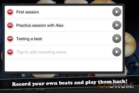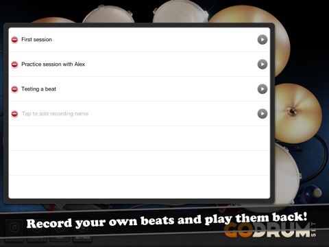 Record your very own drum sessions or play along with your favorite songs from your Music Library. Its all made easy with Go! Drum Set!