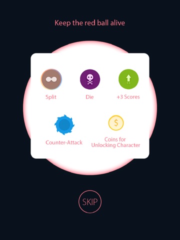 Keep the red ball survival and kill other gray balls as many as you can.