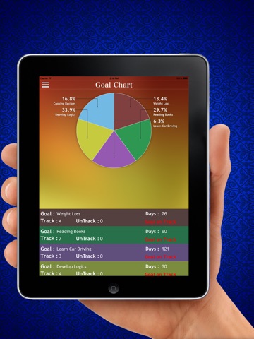 • Goal Chart Screen will Show you Pie chart with How Many Goals you have set and How much percent you reach to your goal.