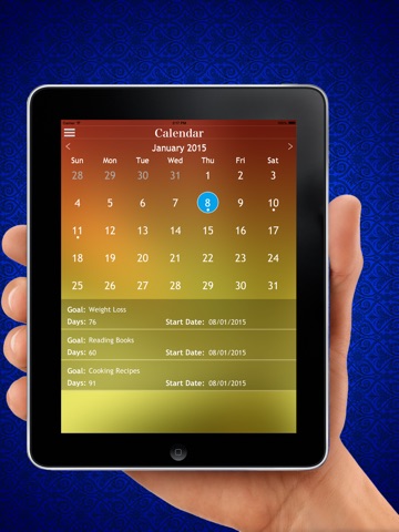 • Calendar screen show your Goal Start Dates and Goal Activity What is your Goal and How Many days to