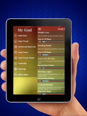 • Easy goal progress Through Goal Screen.