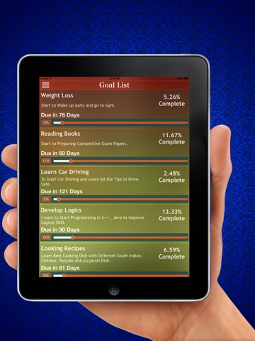 • In Goal List you will see How Much Perfect you Track your goal and how much you miss your Goal.