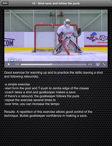 This is why the app was conceived and created. It proposes 23 videos exercices that are indispensable for the advancement of young goalkeepers. You will find exercices for improving their skating, their technique, their reflexes and shot exercices for game simulation.