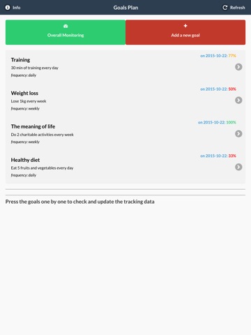 2- Enter your progress goal by goal according to the frequency you choose: daily, weekly or monthly.