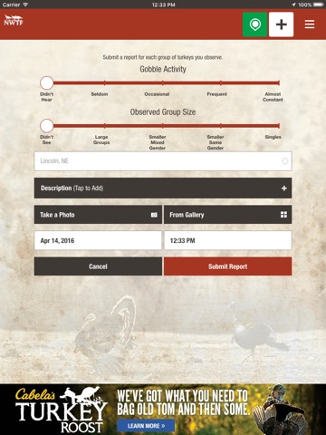 Use The National Wild Turkey Federation Gobble Map to see reports of turkey activity in your area, view trends on an interactive heat map, and track your own turkey hunting activity. Designed with privacy in mind, we never reveal your exact location. With the help of the expert biologists at the National Wild Turkey Federation, Gobble map brings turkey hunting to life on your phone.