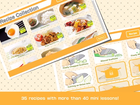 Even those who have never touched a fry pan can gain confidence in their cooking skills. Pulling from the Shufu no Tomos collection of recipes (with plans to add more later) as well as many other authentic Japanese cookbooks and magazines we put together more than 30 lessons and over 40 mini-lessons (more will be added later) for you to enjoy. Collect Gochi-Show points and mini-lessons in order to become a master chef! You can be sure to impress your friends, family, and even that special someone with one of our many recipes.Improve your life through the delicious art of cooking!