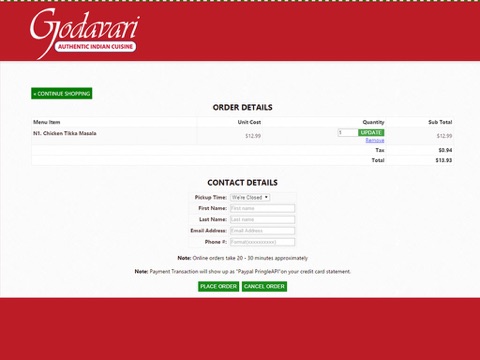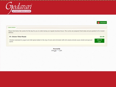 Godavari Curry Express is a mobile application intended for the very important patrons of the restaurant to allow for quickly ordering online curries of the day. The curries are prepared fresh and pre-packed to for instant delivery.