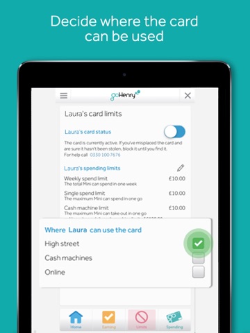 Choose when, where and how much your child spends—and change your preferences anytime in-app.