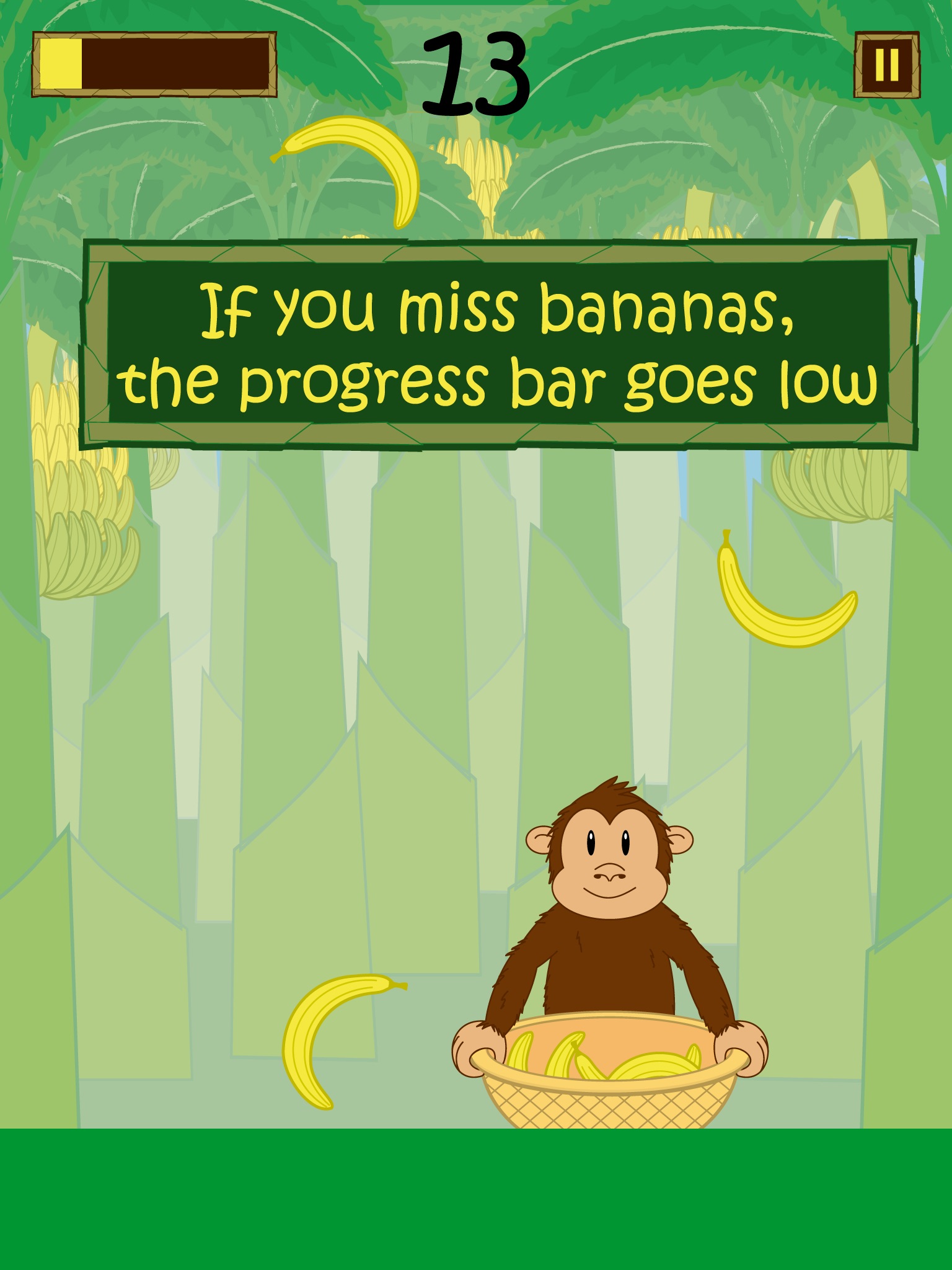 Get as many Bananas as you can and dont let them drop in the floor. Each Banana that you mis will lower your progress bar. If you fill all the progress bar you will get a bonus with a lots of bananas falling from the sky.