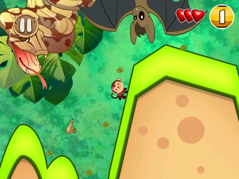Monkey needs to grab up all of the bananas and reach the mega banana! Slingshot from trees and stems to collect as many bananas as you can! Avoid the other birds, snakes and bats while you fly and dive around! Oh MY! (Prepare for increasingly-challenging levels)!!!