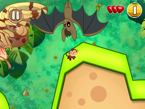 Monkey needs to grab up all of the bananas and reach the mega banana! Slingshot from trees and stems to collect as many bananas as you can! Avoid the other birds, snakes and bats while you fly and dive around! Oh MY! (Prepare for increasingly-challenging levels)!!!