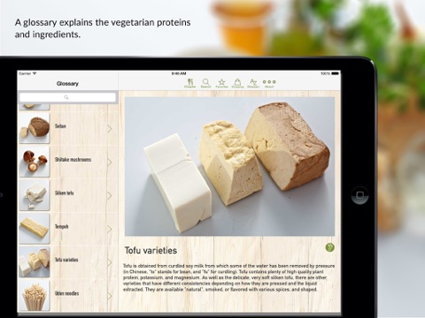 Technisch ausgereifte App. Aber vor allem ein tolles Kochbuch, zum "Einfach nach Rezept Kochen" genauso geeignet wie als Inspiration für eigene Rezepte. Für Veganer (Rezepte ohne tierischen Produkte sind extra gekennzeichnet), für Vegetarier, aber besonders für den ganzen Rest, um die fleischlose Küche kennenzulernen!