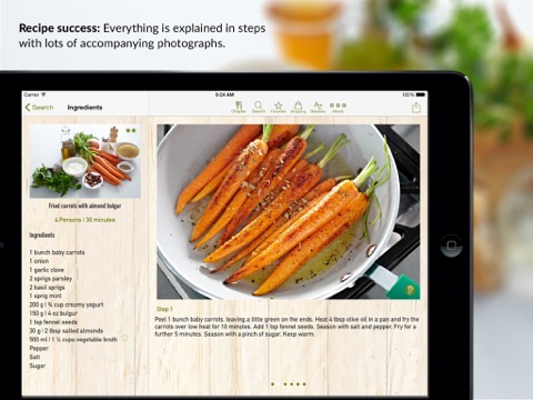 Tolle App. Sehr leckere Rezepte, gute Auswahl. Appetitanregende Fotos. Navigation einfach und gut. Durch die Schritt-für-Schritt-Fotos über dem Text muss man allerdings (auf dem iPhone) mit Kochfingern scrollen. Aber man kann nicht alles haben. ;) Praktisch auch, das man die Rezepte weitermailen kann.