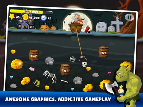 Aim on the gold while the hook swings, and tap on the screen to release the hook. Your claw will swing back and forth. Reel to mine gold and other treasures out of the earth.