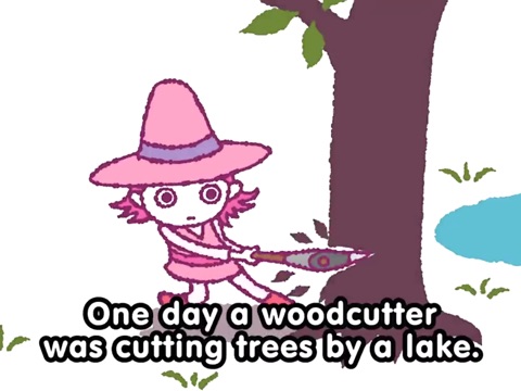 One day a woodcutter was cutting trees by a lake. The woodcutter dropped his trusted axe and panicked. Suddenly, from the middle of the lake, a very beautiful goddess appeared. "Whats wrong?" He said "I accidentally dropped my beloved axe into the lake!" She said "I see." The Goddess went into the lake and appeared with a shiny axe...