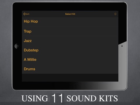 Golden Beats includes a wide range of high-quality real and electronic drum kits. You can also play along with songs from the music library or record your acapella and play along with it.