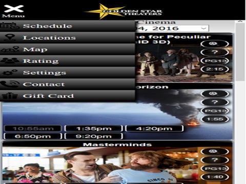 Have access to movie showtimes, descriptions and buy tickets at any Golden Star Theater.