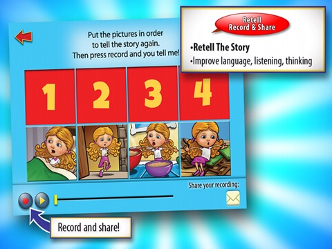 -Help your child record his or her own version of the story and share it with Grandma and other loved ones, teachers and friends…right from the app!